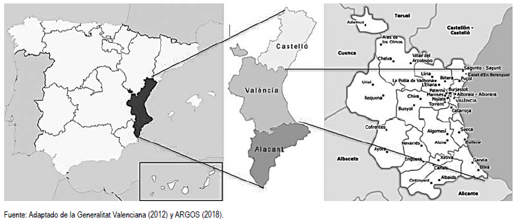 Figura 1. Comunidad Valenciana y provincia de Valencia.