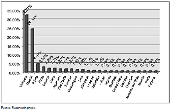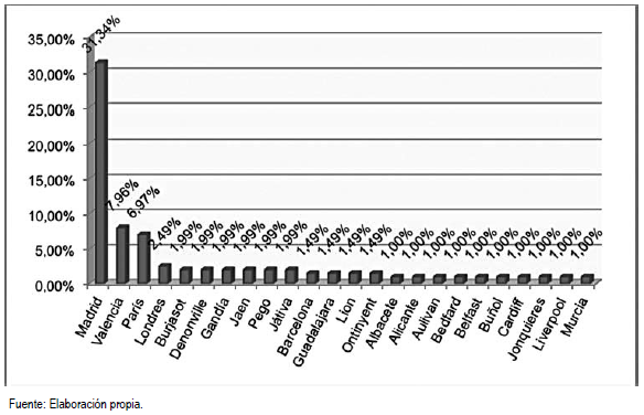 Figura 6. Ciudad de procedencia de los turistas y visitantes de Oliva.