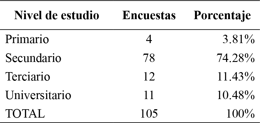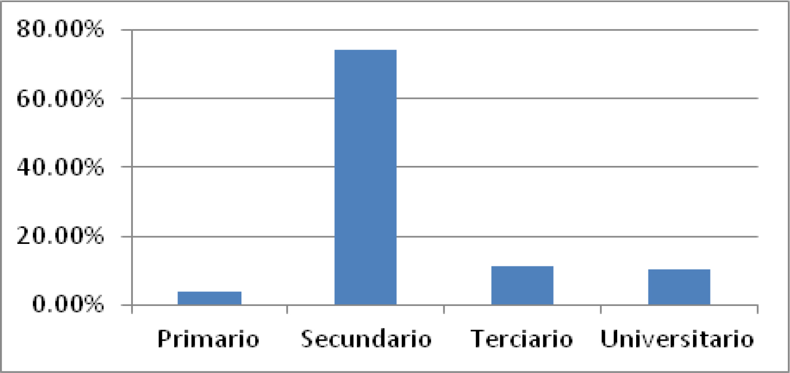 tercio) y presentaban nivel de estudio correspondiente a secundario completo (tres cuartas partes).
