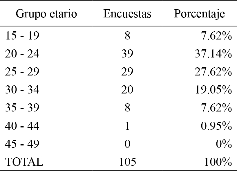 de percepción y escala de Likert. La mayoría se encontraban en el rango de edad entre 20 y 24 años (más de un