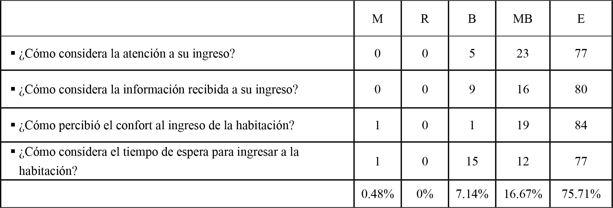 Adicionalmente, se detectaron aspectos a optimizar relacionados con demoras en el ingreso a la habitación, la