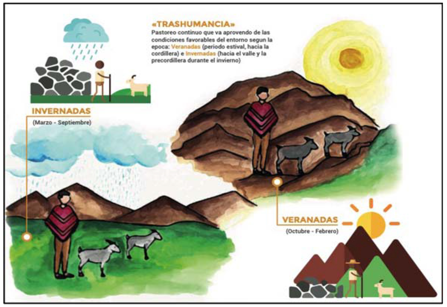 actividades productivas con animales en el territorio, la trashumancia, es decir, el desplazamiento de los rebaños