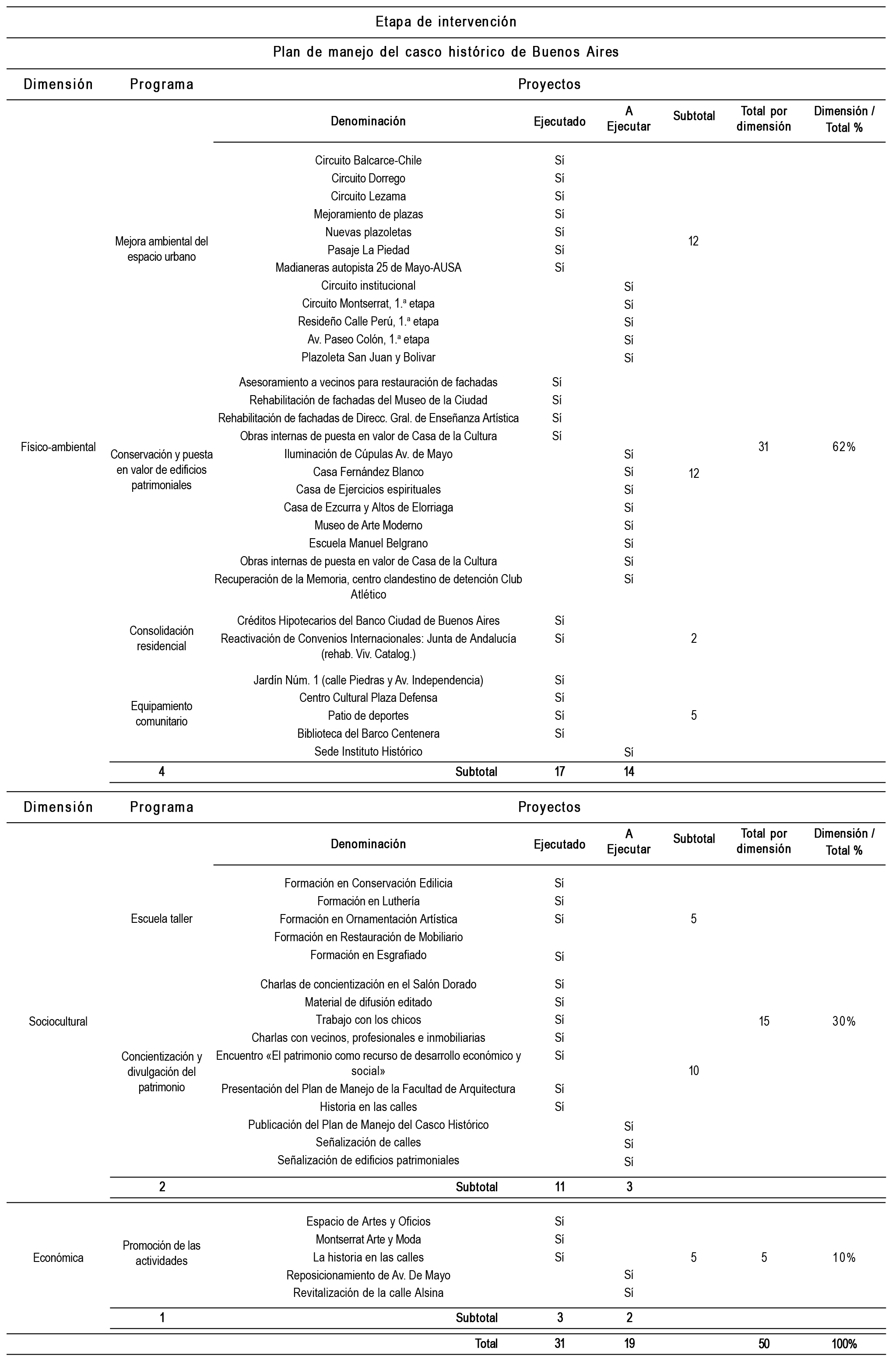 confrontación con el Plan de manejo del casco histórico de Buenos Aires, se logra esbozar una serie de