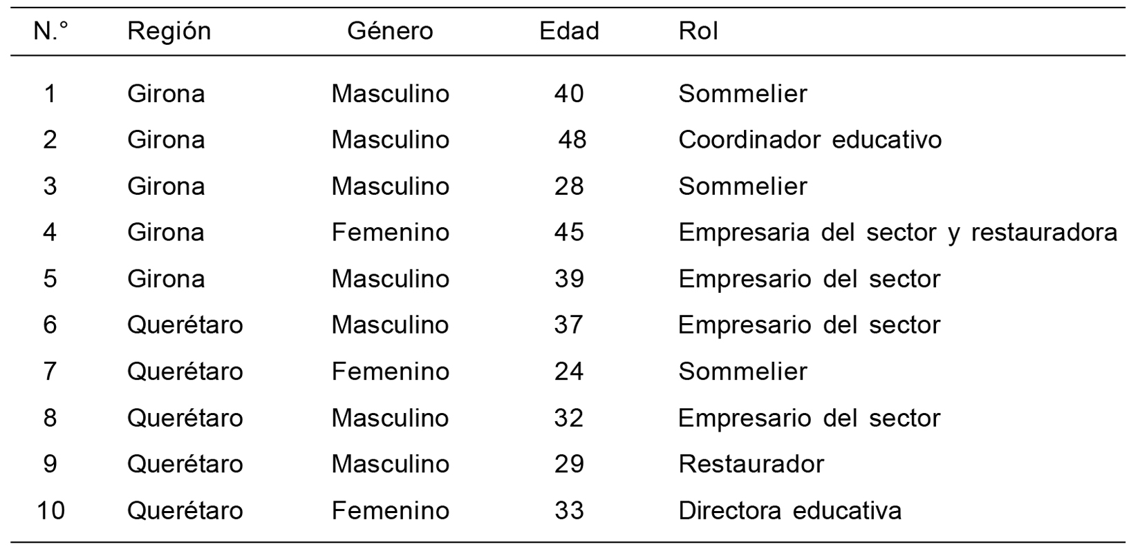 (Mexico), which have a food tourism product focused on wine heritage. Ten people with different profiles