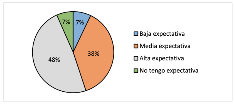 Respecto a si el turista trujillano tiene expectativas por realizar viajes turísticos en el 2020: 7% señaló que tenía baja expectativa; 38% media expectativa; 48% alta expectativa; 7% no tiene expectativa. La tendencia es positiva para realizar viajes turísticos (Figura 21).