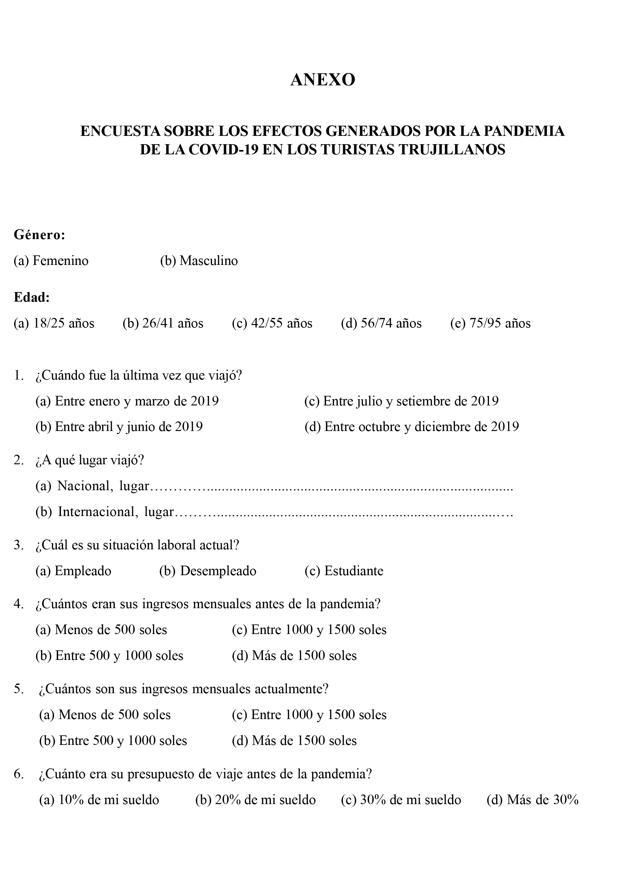 Effects generated from the pandemic by COVID-19 on tourists from Trujillo
