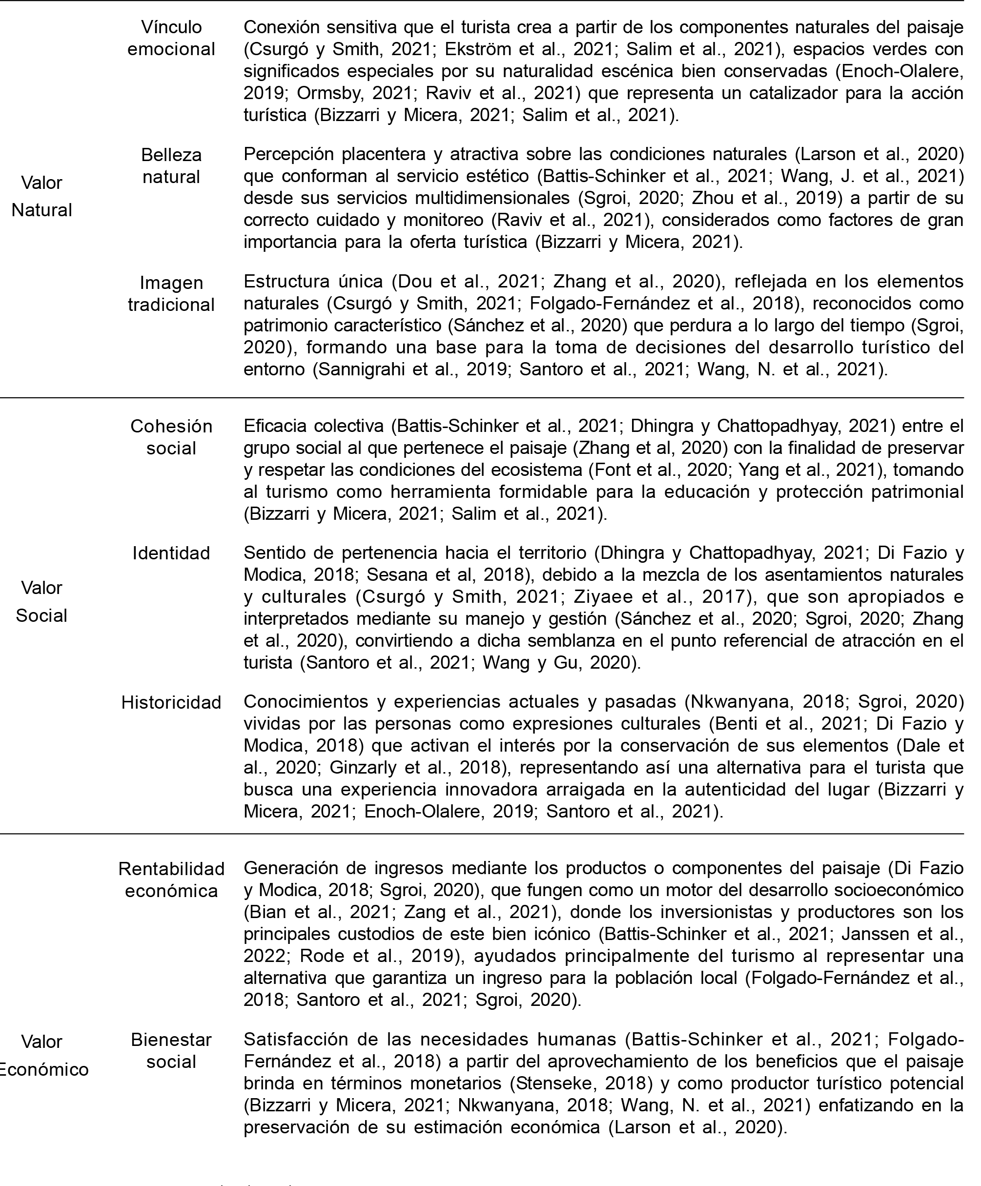 garantizar la integridad de los valores otorgados a cada uno de los componentes del medio cultural a partir de su conservación y usos adecuados (Gómez, 2009; Stenseke, 2018). La valorización es útil para la comprensión