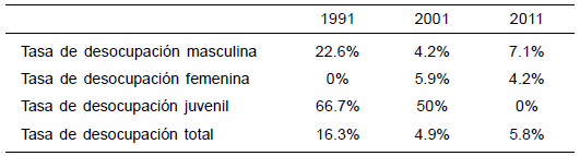 Tasa de desocupación en el municipio de Santo Stefano di Sessanio; comparativo por año en porcentaje (1991-2001-2011)